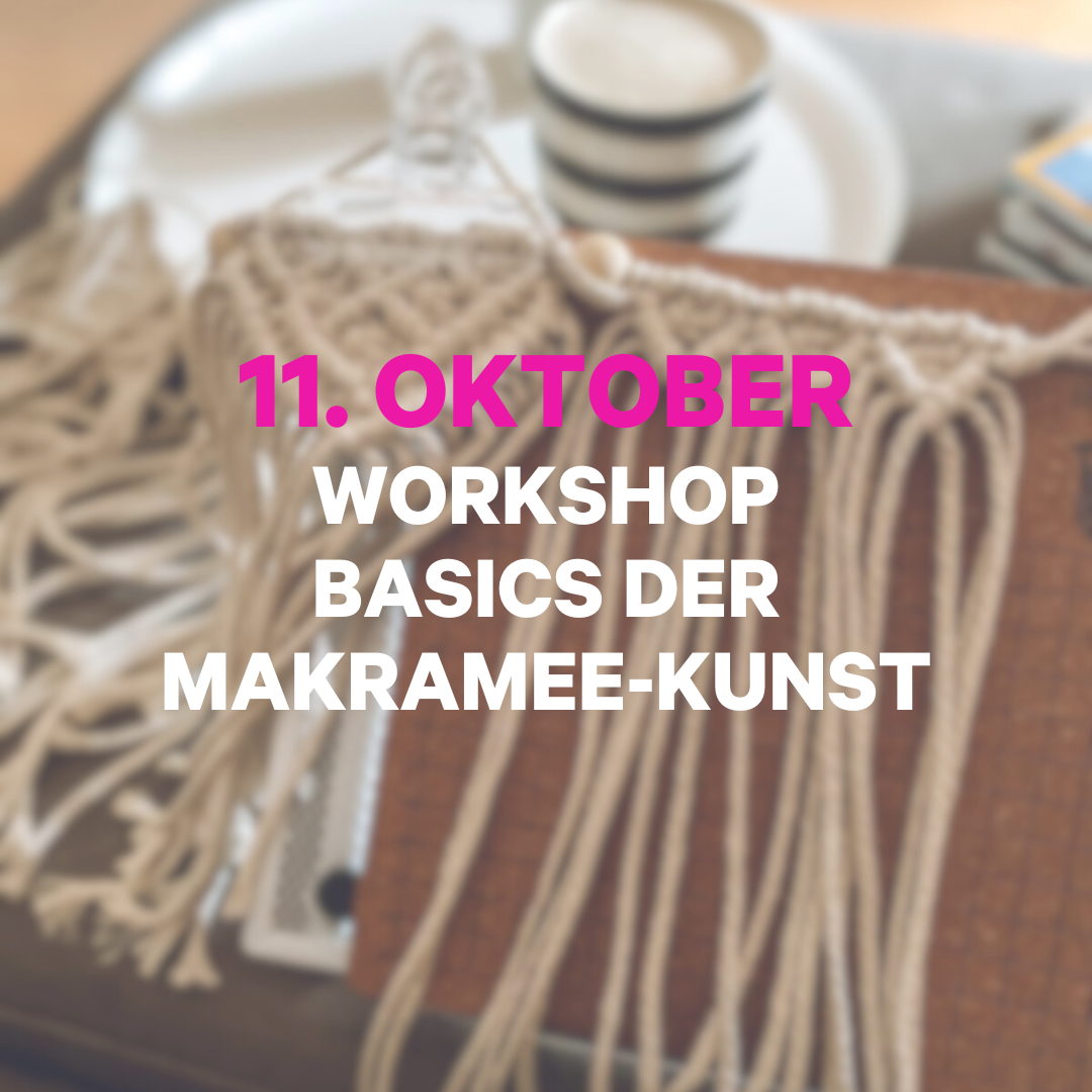 Lust auf einen kreativen Nachmittag? In unserem Workshop “Basics der Makramee-Kunst” am Samstag den 11.10.2025 17-20 Uhr kannst du deiner Fantasie freien Lauf lassen! Unter professioneller Anleitung von SB Sandra's Büdchen gestaltest du einzigartige Makramee-Accessoires, die garantiert Eindruck hinterlassen – ob für dich oder als Geschenk .