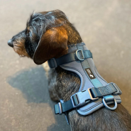 Premium Hundegeschirr Gepolstert Anthrazit/Eisblau