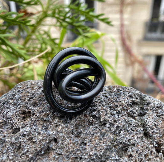 Halbkreis-Kombi Ohrstecker – Neonpinkes Acryl mit schwarzem Anhänger