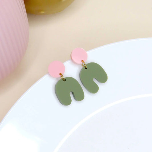 Squishy Arch Bogen Ohrringe in Pastellrosa und Olivgrün