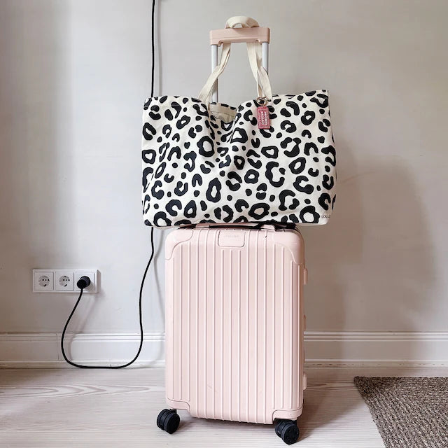 Der stylische und praktische Shopper von LOU LOTO. besteht aus naturfarbenem, sehr strapazierfähigen Canvas und hat einen all over Print im Leo-Look im Siebdruckverfahren von beiden Seiten.