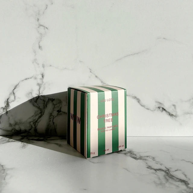 Jede Duftkerze wird von LOU LOTO in Hamburg per Hand in ein schlichtes mattweißes Glas gegossen und in einem hochwertigen Geschenkkarton geliefert. Um den Duft des geschmückten Tannenbaums vor und nach dem Fest noch etwas einzufangen, hat die Brand diesen Duft kreiert. Die Kerze riecht einfach nach dunkler, frischer Tanne und versprüht einen herrlich beruhigenden Duft.