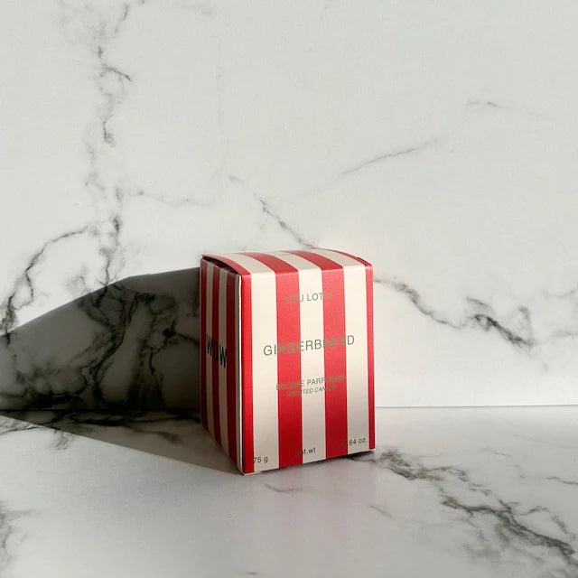 Jede Duftkerze wird von LOU LOTO in Hamburg per Hand in ein schlichtes mattweißes Glas gegossen und in einem hochwertigen Geschenkkarton geliefert. Die Kerze duftet nach nichts geringerem als nach frisch gebackenen Lebkuchen - soo gut.