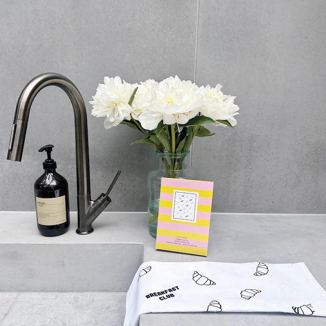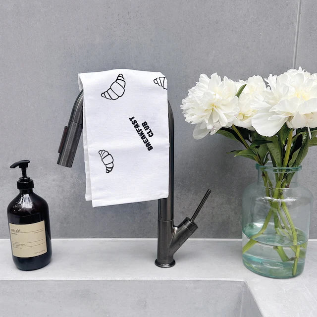 Das weiße Geschirrtuch aus 50 % Baumwolle, 50% Leinen mit coolem Croissant-Print von LOU LOTO. ist ein MUSS in jeder Küche. Dezente Farben mit Motiven, die gute Laune machen. Bei 40° in der Waschmaschine waschbar.