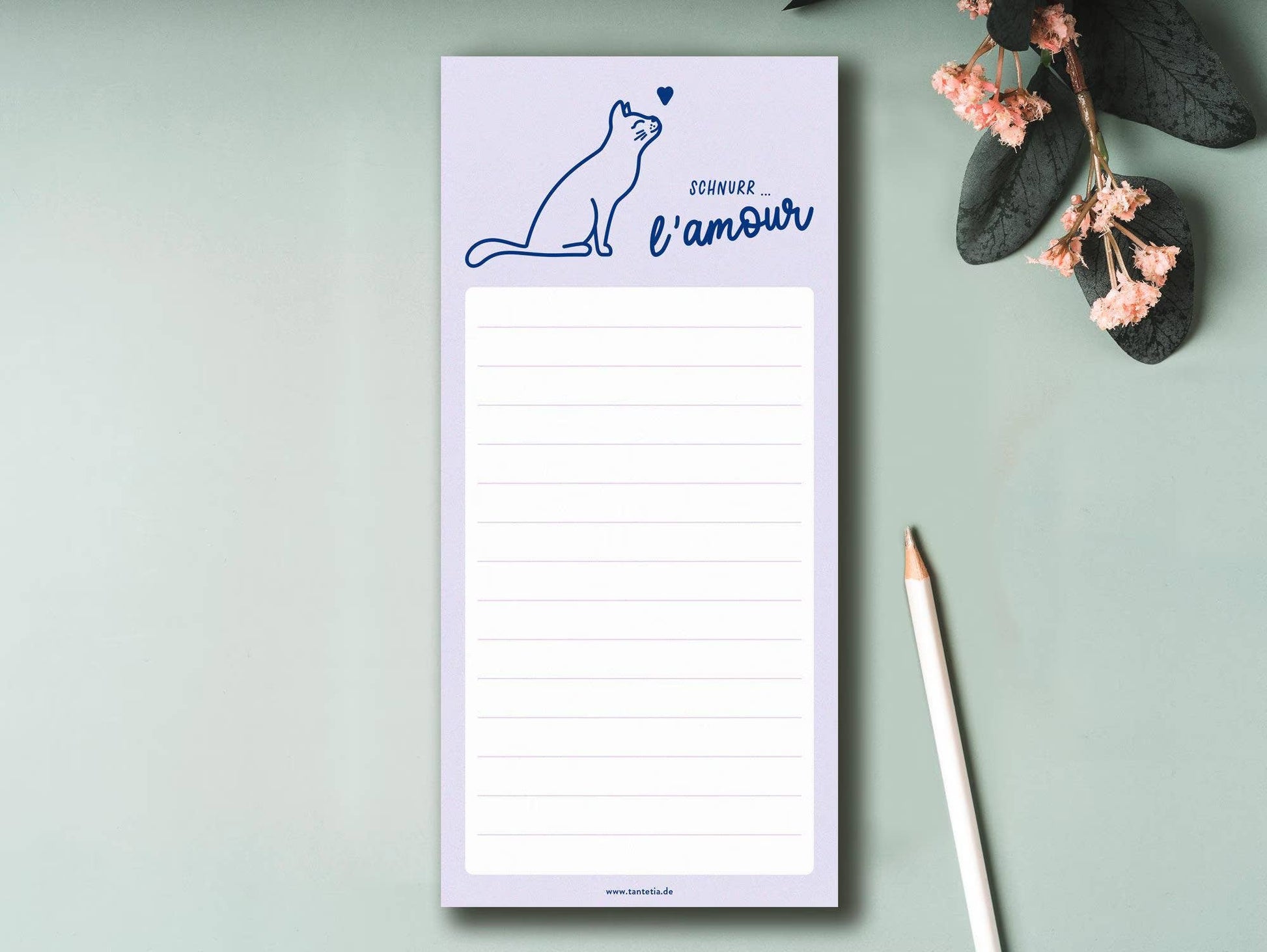 Praktischer Notizblock DIN lang mit beliebtem Katzenmotiv “Schnurr… l´amour“ - Dieser kleine Notizblock eignet sich hervorragend als Einkaufsliste. Damit Du künftig alles im Blick behältst. Das Design wurde von der “Schnurr…” Postkarte übernommen.