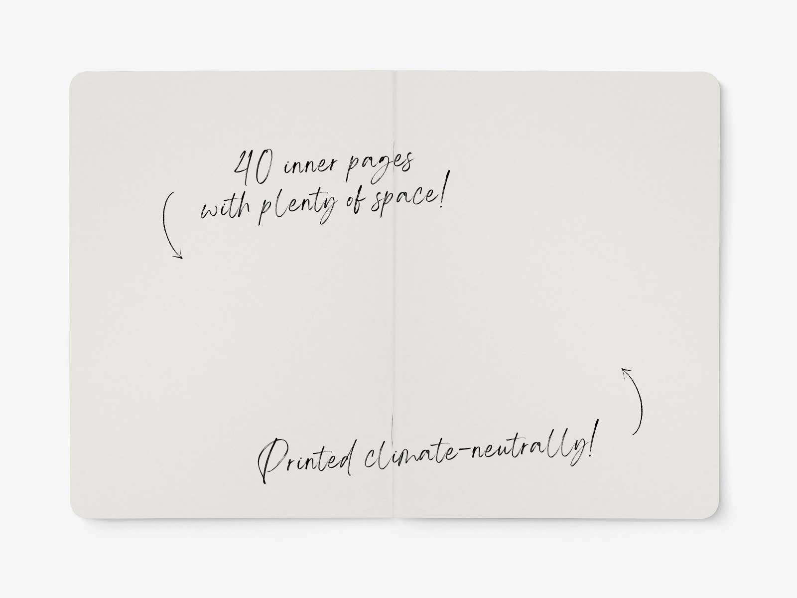 Die Notizhefte von typealive werden in Münster illustriert und auf 80gr/m² Naturpapier klimaneutral gedruckt. Die Ecken sind immer abgerundet. Sie haben ein praktisches DIN A5 Format mit den Maßen 148mm x 210mm. Jedes Heft besteht aus 40 blanko Seiten. Die Klammerheftung macht es besonders haltbar und flachliegend. Der stabile Umschlag besteht aus mattem, bedrucktem Naturpapier (300g/m²).