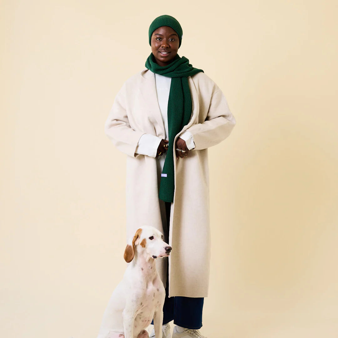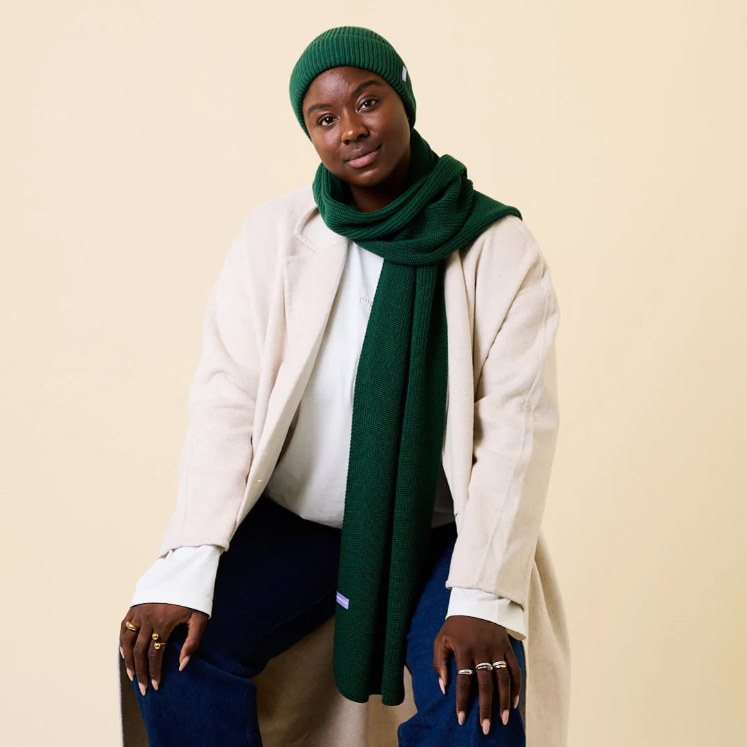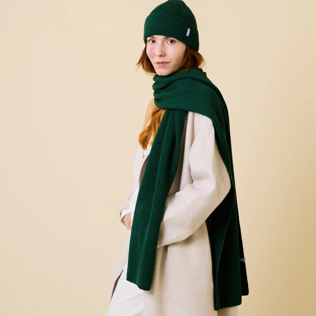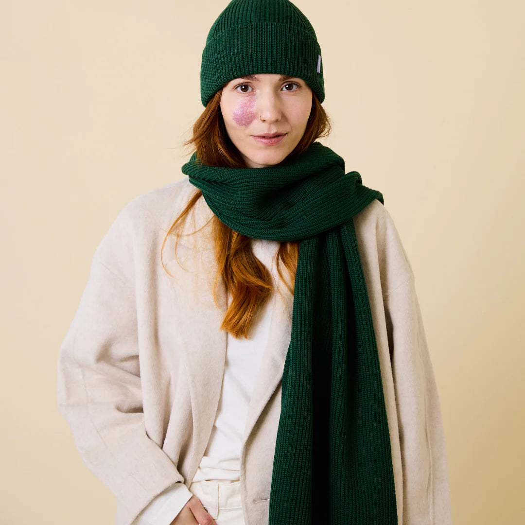 Dein +1 für den Winter. Ultra-soft, aus 100% Merinowolle und farblich ein Hingucker. Ob mit passender Beanie oder alleine, dieser dunkelgrüne Schal wickelt sich echt um deinen Finger, ääh Hals.