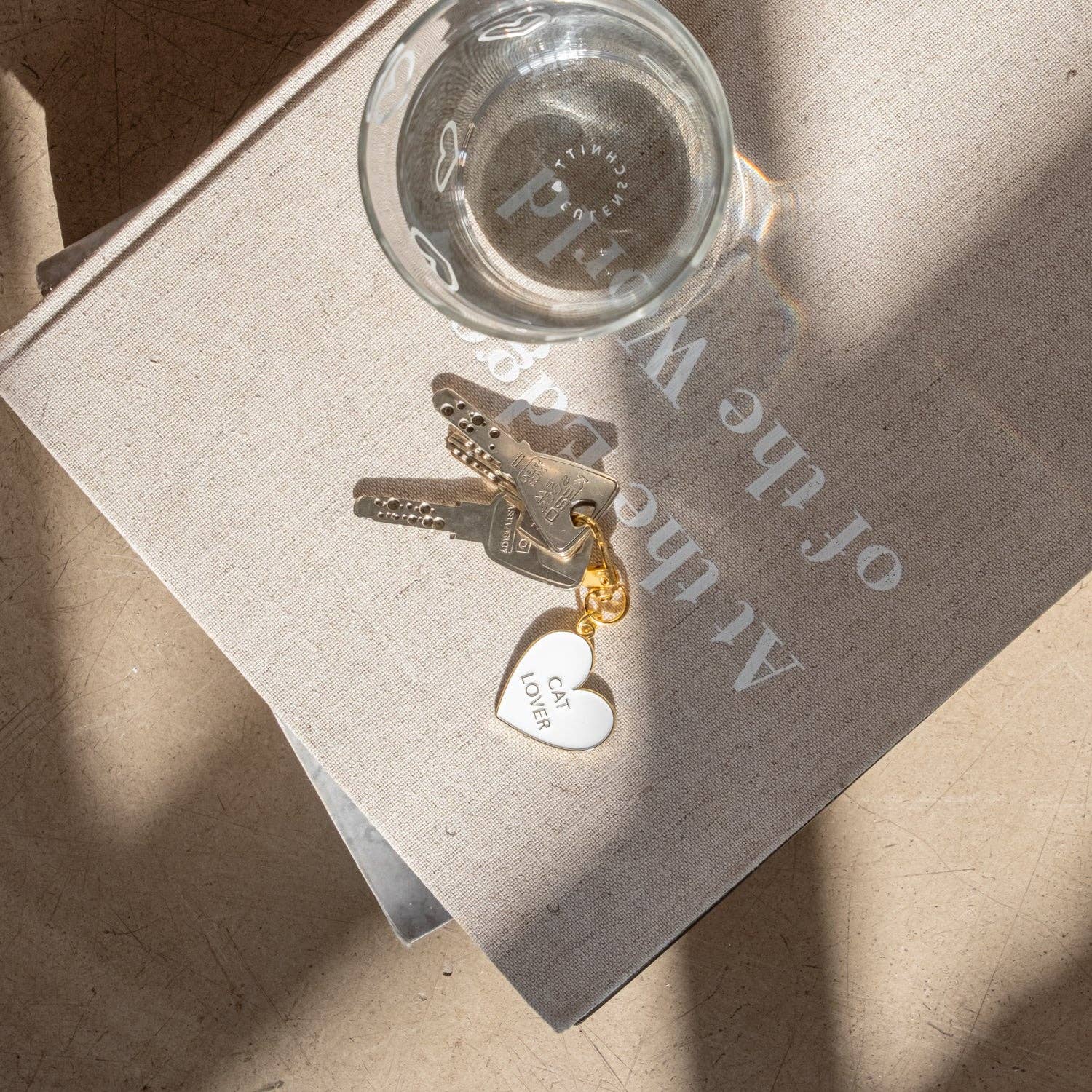 Erlebe die Welt der Katzenliebhaber mit dem Schlüsselanhänger "Cat Lover" in Herzform von Eulenschnitt. Dieses entzückende Accessoire mit einem weißen Hintergrund und goldener Schrift ist eine liebevolle Verehrung an die innige Verbindung zwischen Mensch und Katze. Dieser Schlüsselanhänger ist mehr als nur ein einfaches Accessoire - er ist eine Liebeserklärung an deine geliebte Samtpfote, die du jeden Tag bei dir tragen kannst. Mit seinem herzlichen Design und der Botschaft "Cat Lover" zaubert er dir ein Lächeln ins Gesicht und erinnert dich daran, wie viel Freude und Zuneigung dein pelziger Freund dir schenkt. Trage die Liebe zu deinem treuen Begleiter stets bei dir und präsentiere der Welt voller Stolz deine Zuneigung zu Katzen!