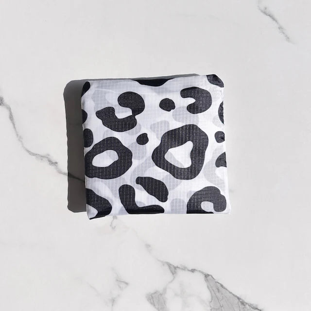 Die Shopping Bag Leo in weiß und schwarz ist ein kleines Raumwunder und ist ideal für den täglichen Einkauf geeignet. Sie trägt 2 bis 3 Plastiktüten voller Waren bequem in der Hand oder über der Schulter.