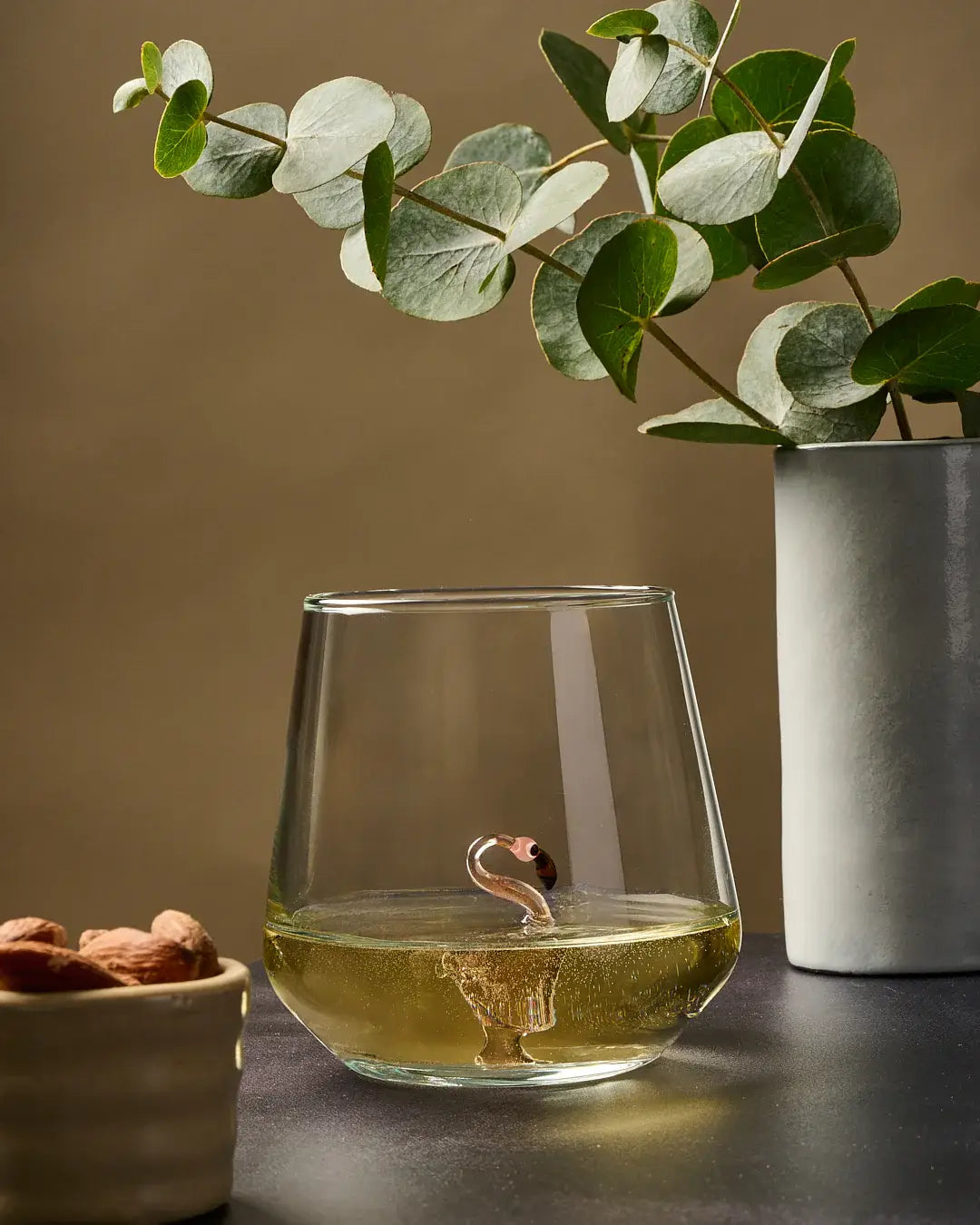 Einzigartige Murano-Trinkgläser mit Flamingo-Figur von Glamuran Berlin für dich oder als Geschenk!