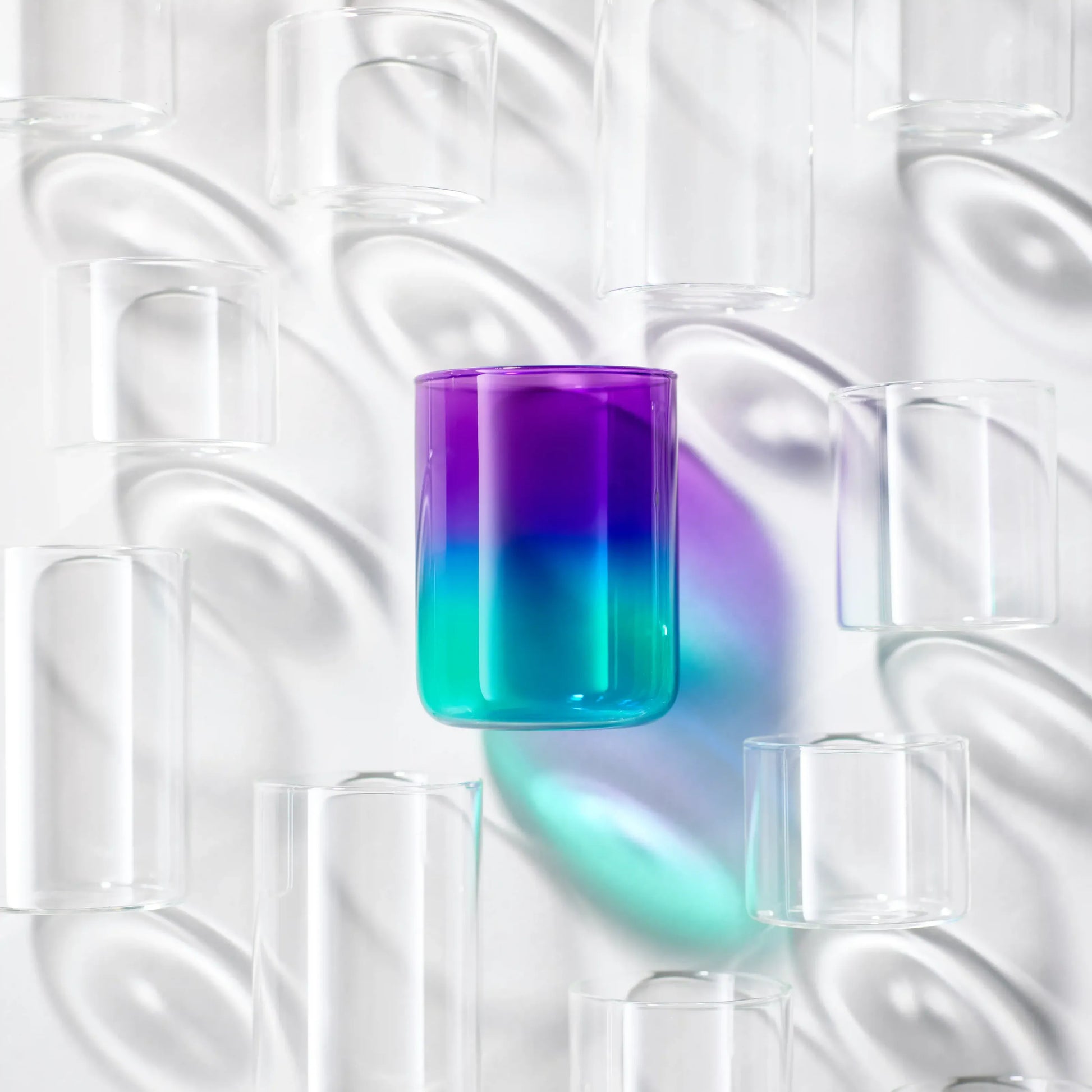 Fresia ist eine Fusion aus Lila und Türkis. Die Tumbler-Kollektion von BLANKSTILL wird in Berlin entworfen und in Polen mundgeblasen und bemalt und ist auf Langlebigkeit ausgelegt. Kombiniere die Gläser nach Belieben, um deinen Stil widerzuspiegeln.