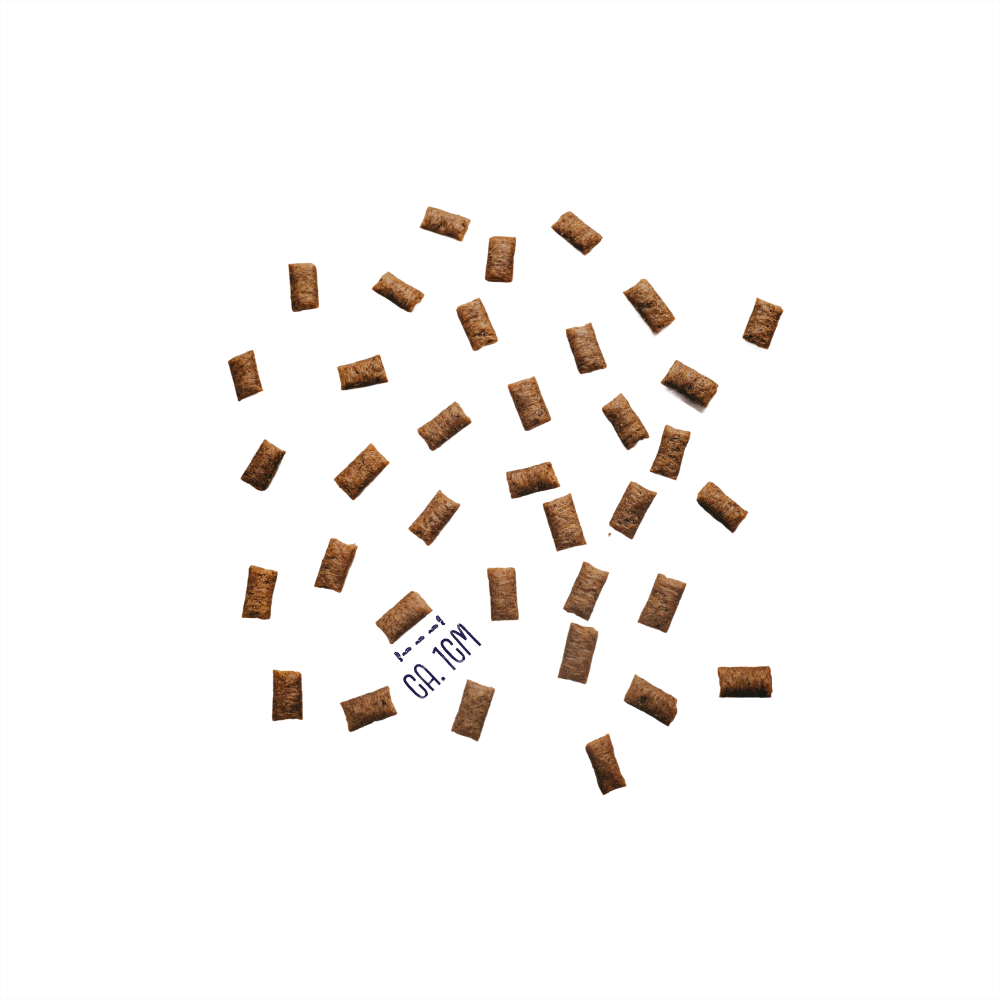 Außen crunchy, innen creamy, innovativ & unwiderstehlich: Die VEGCAT PURE BITES kombinieren modernste Fermentationsprotein-Technologie mit köstlichem Geschmack. Genuss mit Science-Faktor: Die VEGCAT PURE BITES setzen neue Maßstäbe in Sachen Snack-Innovation. Zusätzlich wurde Taurin ergänzt – essenziell unter anderem für die Herzfunktion deiner Katze. Die PURE BITES enthalten 20 % Fermentationsprotein – eine zukunftsweisende, ressourcenschonende Proteinquelle, die durch die Fermentation von Mikroorganismen entsteht. Mit über 60 % Proteingehalt bietet sie maximale Effizienz bei minimaler Umweltbelastung – smart, nachhaltig und wissenschaftlich durchdacht. Die Rezeptur ist hypoallergen und damit ideal für sensible Katzen. Da Fermentationsprotein ein völlig neuer bakterieller Proteintyp ist, sind Allergien und Kreuzreaktionen äußerst unwahrscheinlich. Zum Vergleich: Zu den häufigsten Futtermittelallergenen bei Katzen zählen Rind (18 %), Fisch (17 %) und Huhn (5 %)* – alles Proteine, die in den PURE BITES bewusst nicht eingesetzt werden. So entsteht ein Snack, der optimal zur selektiven, empfindlichen Katze passt – mit einer innovativen Proteinquelle, die allergenes Potenzial gezielt vermeidet.