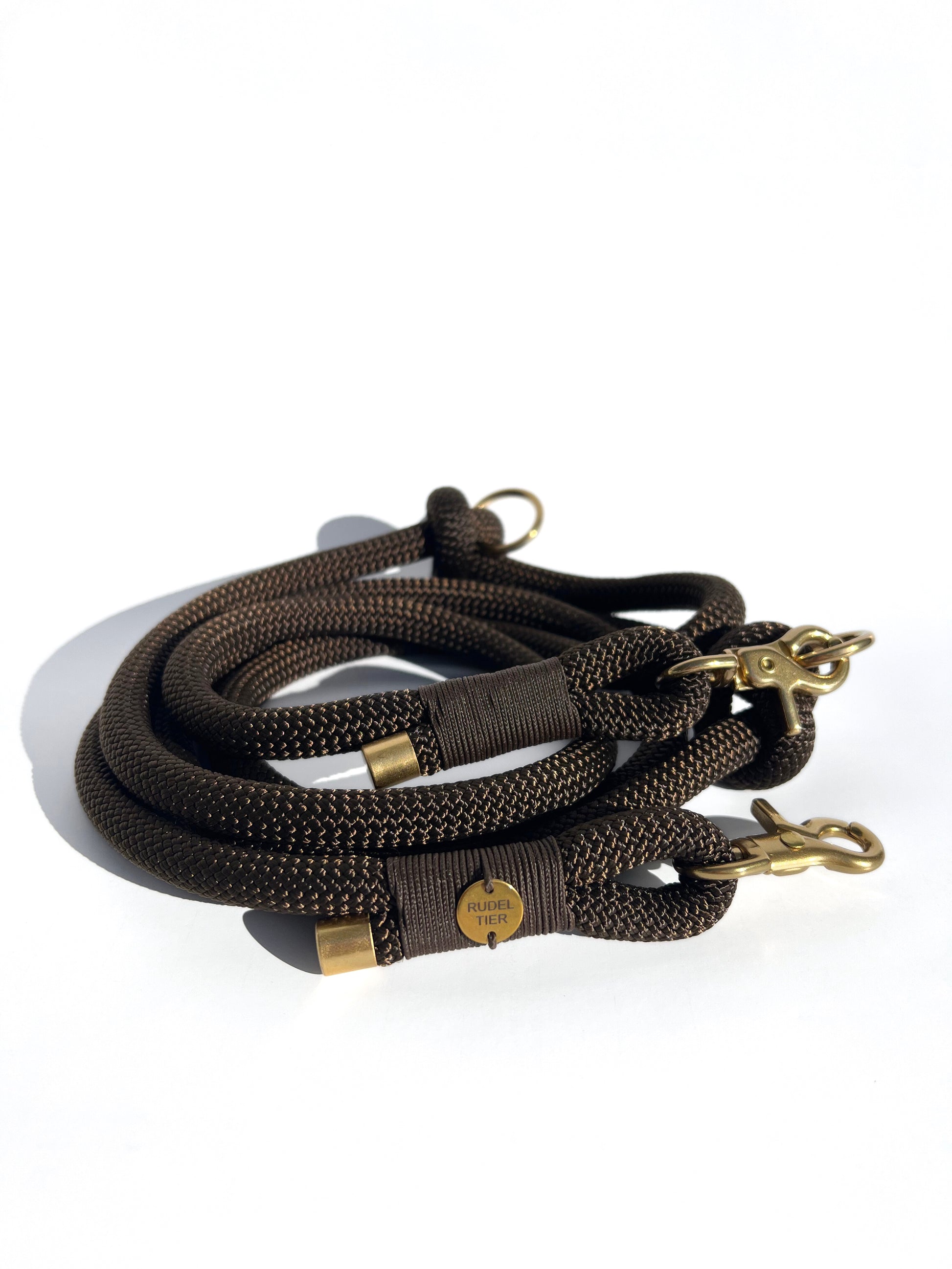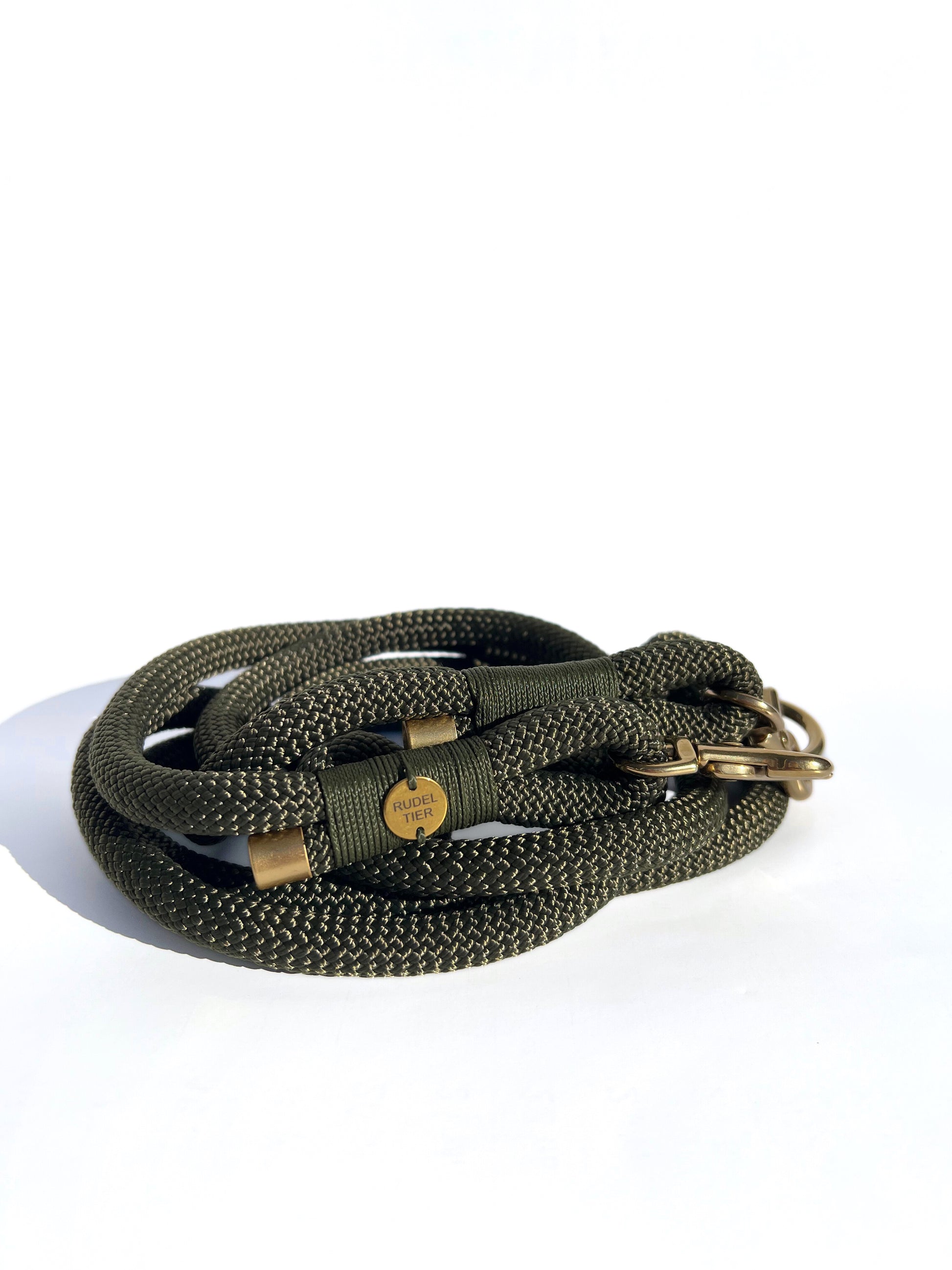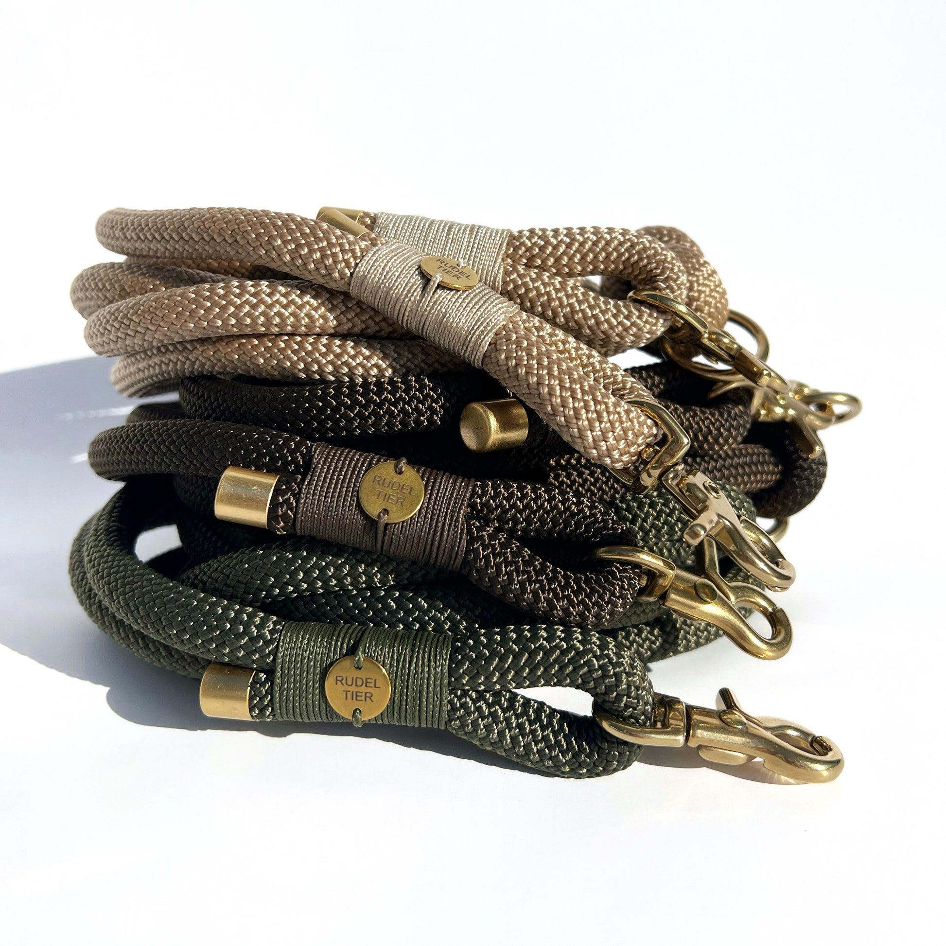 Die verstellbaren Hundeleinen von RUDELTIER bestehen aus robustem Nylon-Tau in 3 zeitlosen Farben und stabilen rostfreien Beschlägen aus Messing. Jedes Exemplar wird liebevoll in Düsseldorf per Hand hergestellt. Die Leinen sind in der Länge frei regulierbar, so dass du sie als kurze Cityleine, handsfree oder in der langen Version tragen kannst. Das Tau hat eine angenehme Stärke von 10cm und den Scherenkarabiner gibt es in 2 Größen, damit kleine als auch große Hunde perfekt ausgestattet sind.