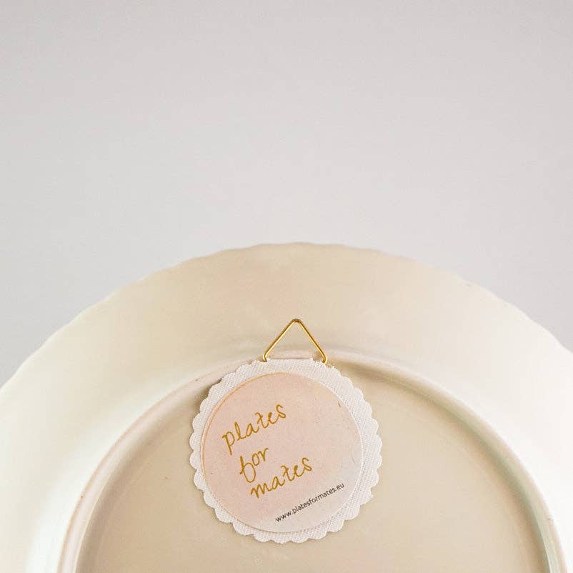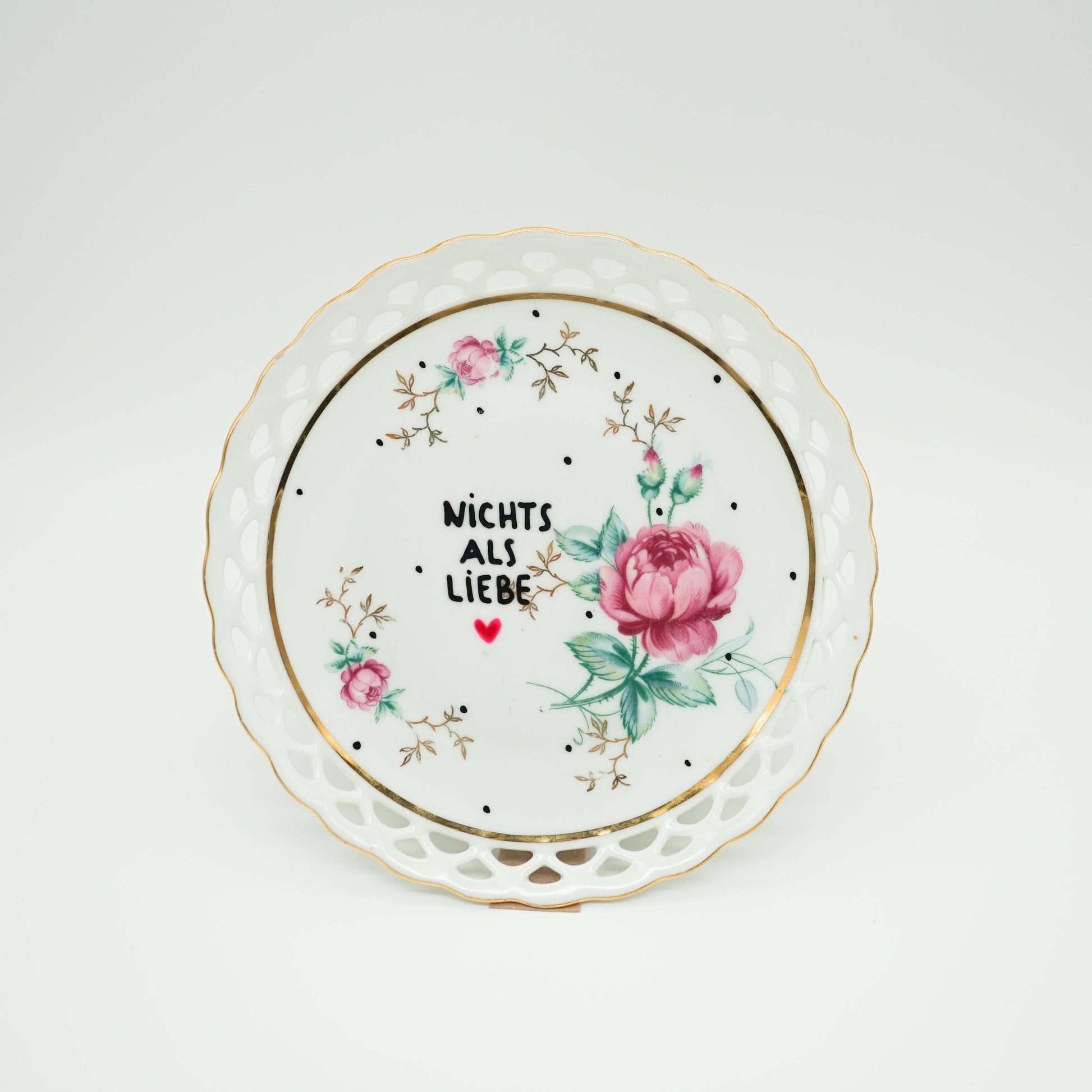 Dieser edle Wandteller von ohRuby ist mehr als nur ein Dekorationsstück – er ist ein wahres Kunstwerk, das deinem Raum Charakter verleiht. Von Hand veredelt und als Unikat gefertigt, zieht er alle Blicke auf sich und wird zum einzigartigen Highlight an jeder Wand. Mit seinem filigranen Design und der hochwertigen Verarbeitung ist er nicht nur ein Blickfang, sondern auch ein Symbol für handwerkliche Meisterschaft. Ob im Wohnzimmer, der Küche oder im Flur – dieser Wandteller bringt sowohl Schönheit als auch Geschichte in dein Zuhause. Das Dekor des Tellers kann kleine Abnutzungen aufweisen, die dem Artikel jedoch seinen besonderen Vintage-Charme verleihen. Alle Teller werden bereits mit einer Halterung an der Rückseite versehen, sodass du dein neues Lieblingsteil direkt an die Wand bringen kannst.